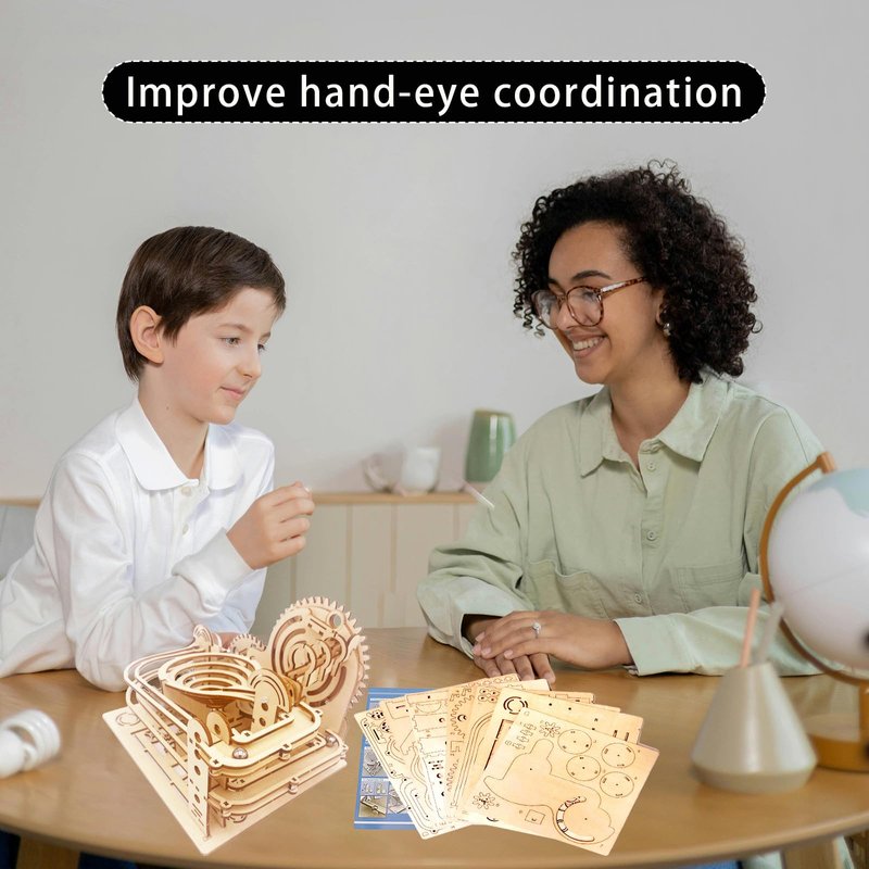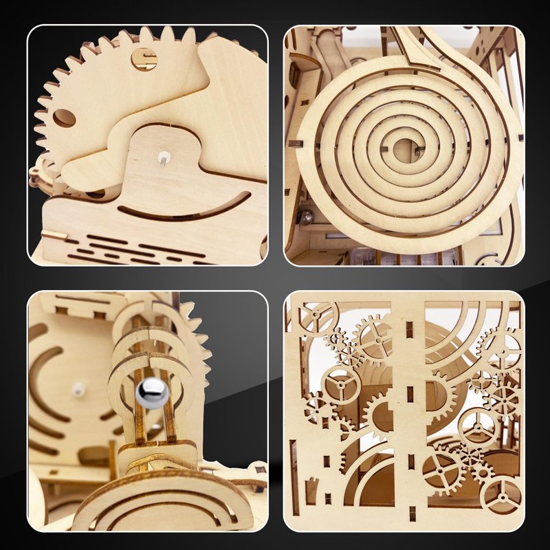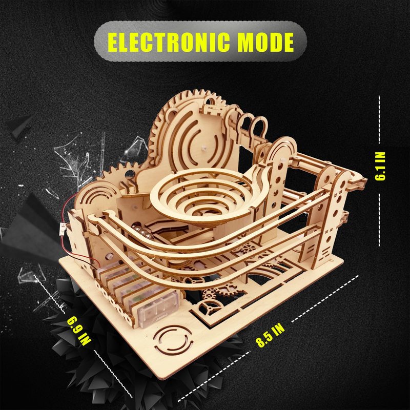 - WOODEN MARBLE RUN: Electranic mechanical marble runs are suitable for adults and teen who like a challenge, making a jigsaw model kit may take a couple of hours, after assembling this 3-d puzzles, you will be overwhelmed by the pride you will feel when you see the rolling balls on the runway.