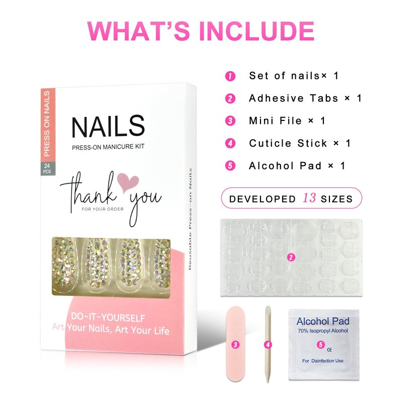- Color: FULL STONES 24NAILS