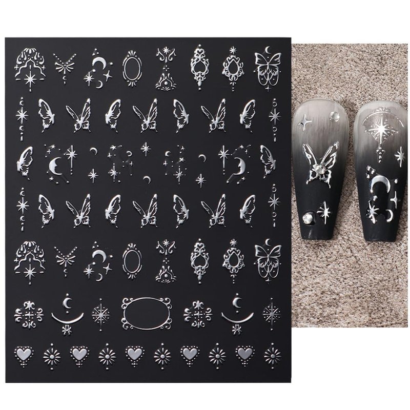 3D Silver Metallic Nail Stickers for Women Star Moon Sun Nail Decals for Nail Art Design Butterfly Nail Art Stickers Boho Totem Nail Sticker Self-Adhesive Stickers for Nails DIY Nail Decor, 8 Sheets
