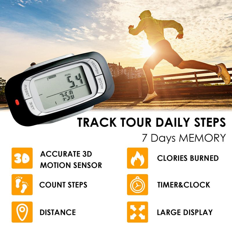 3D Step Counter with Clip and Lanyard, Accurate Digital Pedometer with Large Digital Display 7 Days Memory Calorie Counter Accurately Track Steps for Men Women Adults Seniors