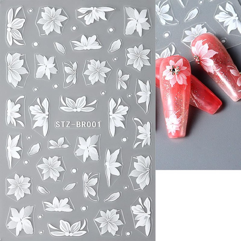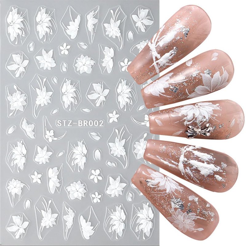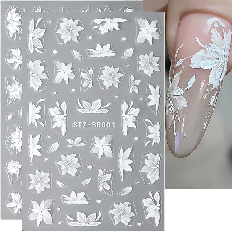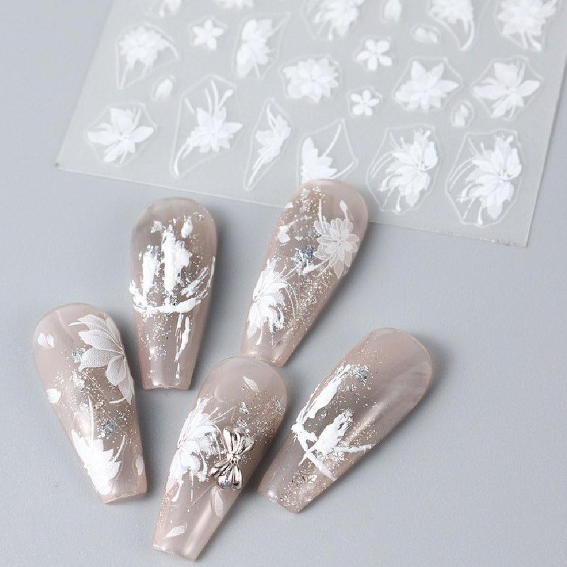 White flowers nail design stickers, both for women and girls.