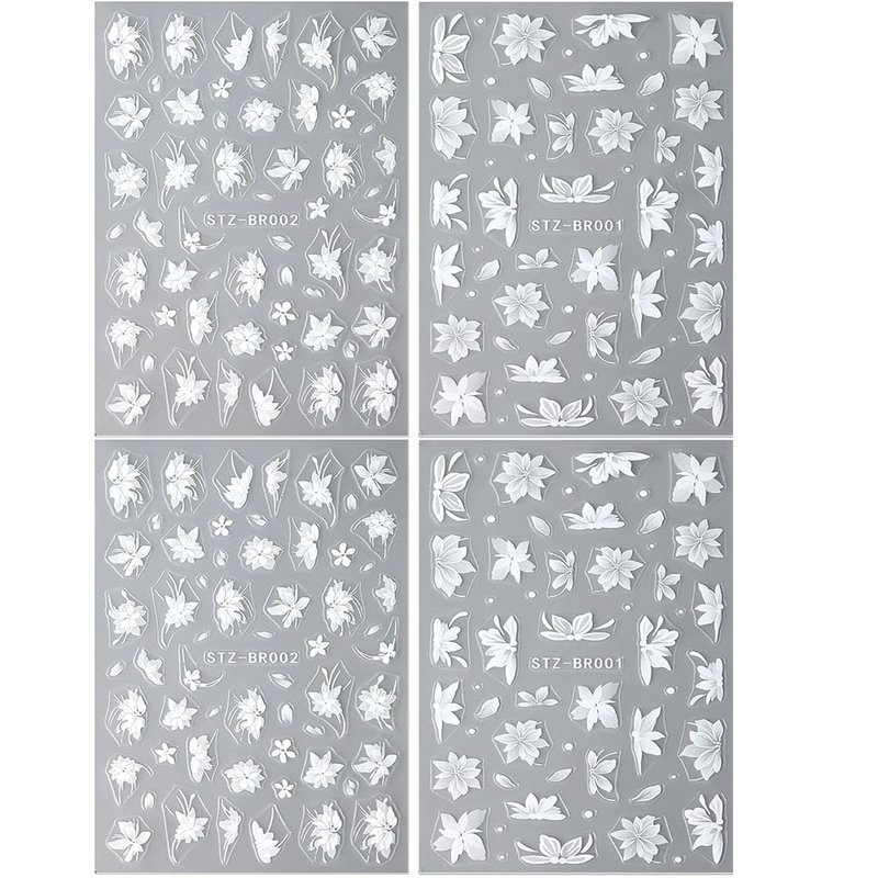 4 Sheets White Flowers Nail Art Stickers