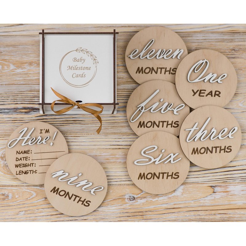 - Baby wooden monthly milestone cards each plaque features the double-sided month 3d number, new parents to be gifts, baby shower gift, gifts for pregnant wife.