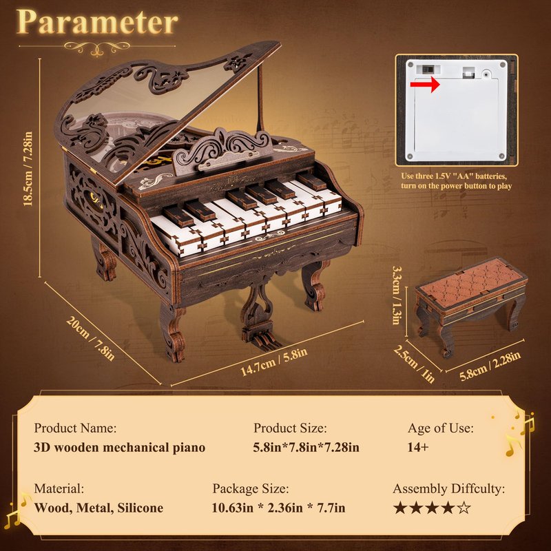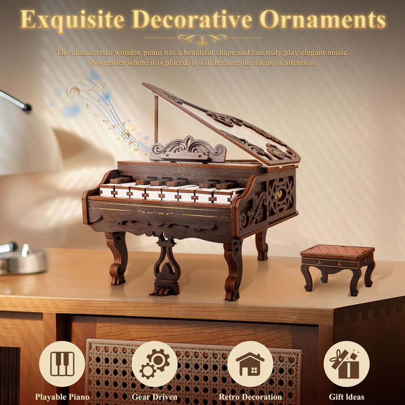 - 【Mechanical Music Experience】:Piano model kit comes to life once assembled, combining craftsmanship and functionality with a battery-powered feature that plays a delightful tune. Each key is designed to move in unison with the gears, creating a unique musical experience that blends artistry and engineering.
