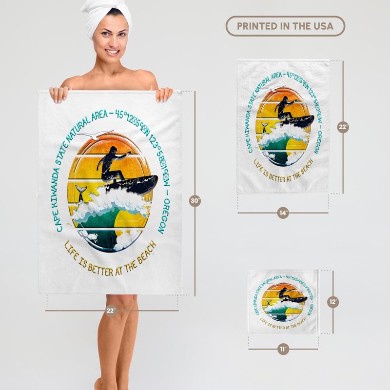 American beaches - Cape Kiwanda State Natural Area, Oregon cool gift Towel is great to use in the kitchen, bathroom or gym. This 15 by 22 inch, hand/sports towel allows you to customize your room with a special design or color. Great for drying dishes, hands and faces. Suitable to put in any sports bag. Image will not fade after washing. Machine wash, tumble dry low, do not bleach. Towel will regain its fullness after the first washing. Made of: Printed side 100% polyester and reverse side 100% Terrycloth cotton. Image printed on polyester side/ terry cloth side is blank white.