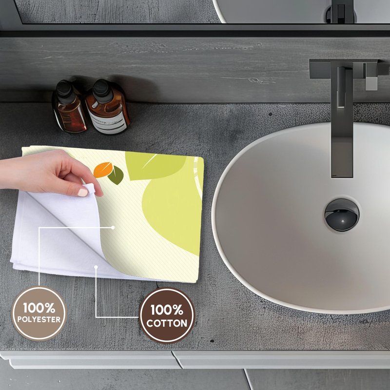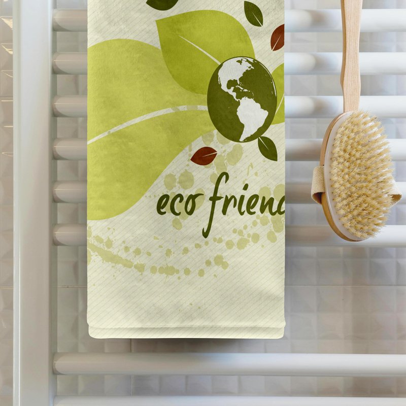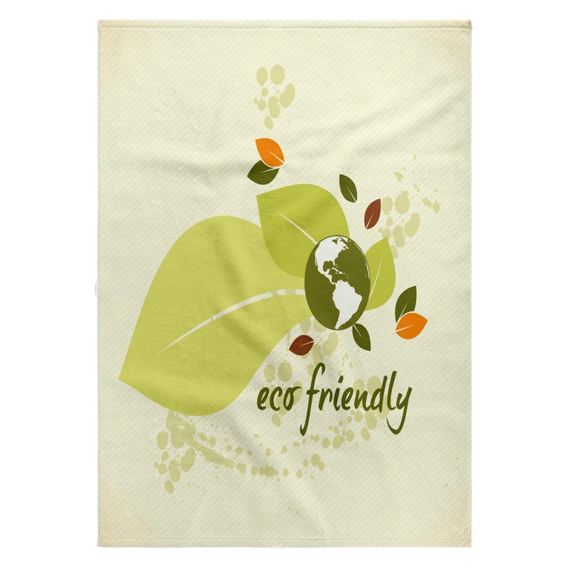 Eco-Friendly Leaf Earth Day Environmental Vector Design Towel is great to use in the kitchen, bathroom or gym. This 15 by 22 inch, hand/sports towel allows you to customize your room with a special design or color. Great for drying dishes, hands and faces. Suitable to put in any sports bag. Image will not fade after washing. Machine wash, tumble dry low, do not bleach. Towel will regain its fullness after the first washing. Made of: Printed side 100% polyester and reverse side 100% Terrycloth cotton. Image printed on polyester side/ terry cloth side is blank white.