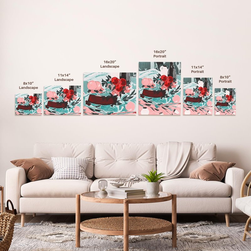 - Professionally stretched canvas over a wood frame, the image is wrapped around the sides.