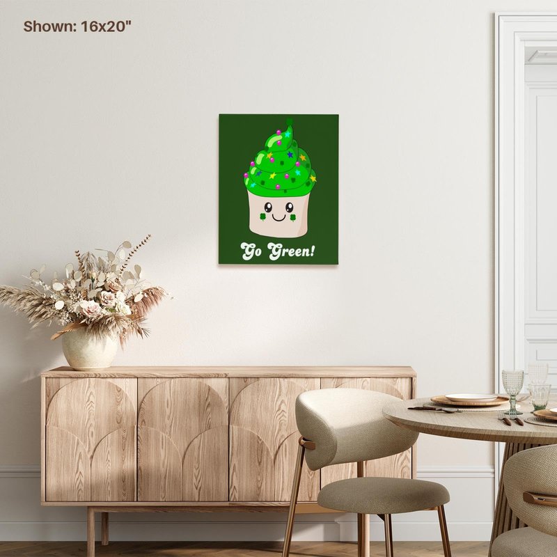 3dRose, Go Green - St Patricks Day Irish Cute Cupcake - Eco friendly Kawaii Dessert - Ireland Irish humor, Museum Grade Canvas Wrap 10x8