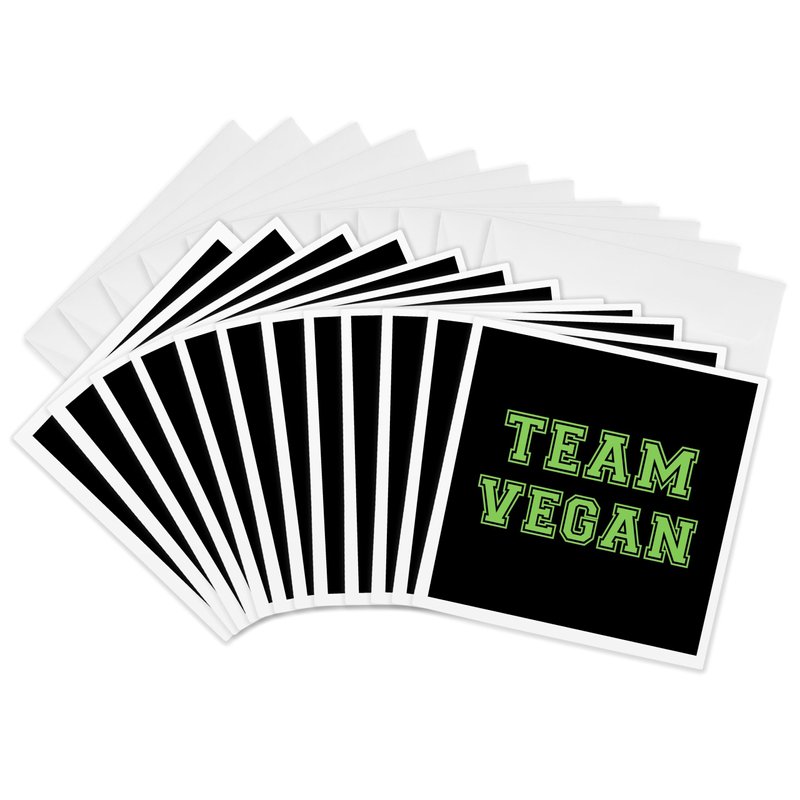 3dRose Greeting Cards - Team Vegan - pro veganism fun - green text in retro sporty college sports font on black - 12 Pack - Typography