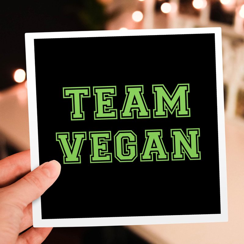 Greeting Cards - Team Vegan - pro veganism fun - green text in retro sporty college sports font on black - 12 Pack - Typography