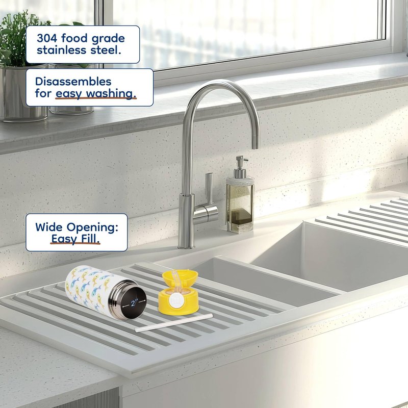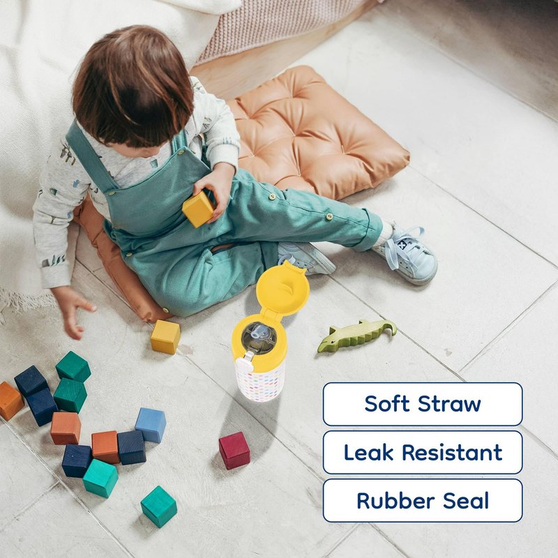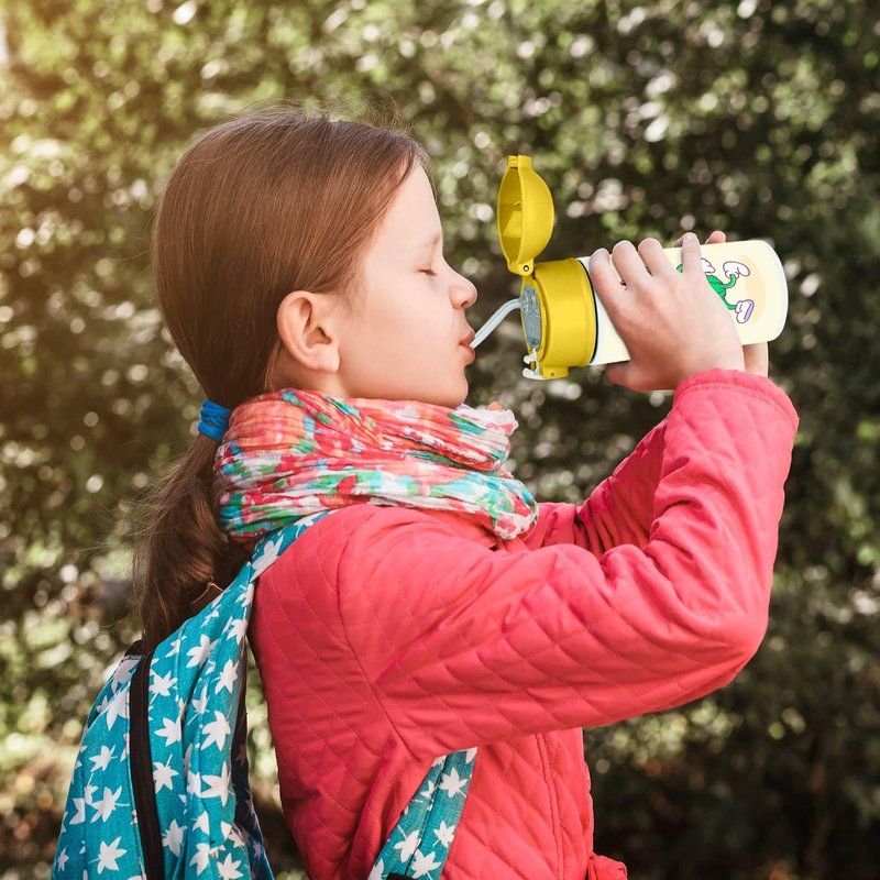- This 12oz kids water bottle features a cheerful yellow lid that makes it easy for little hands to grip. Made from durable materials, it's perfect for daily use, with a secure lid to prevent spills and keep drinks fresh.