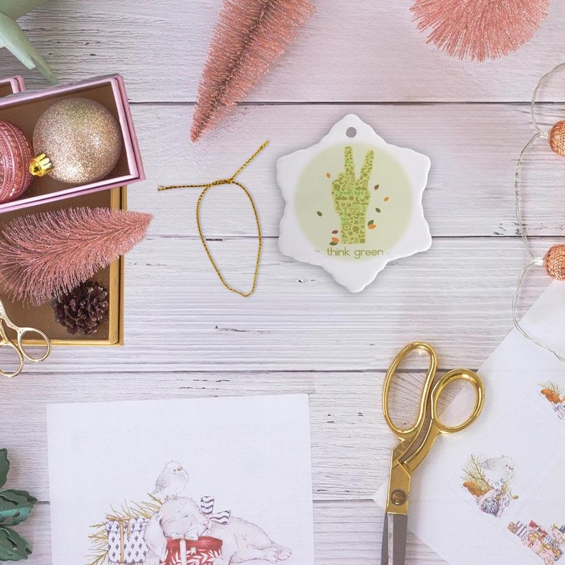 3dRose ORN_104521_1 Earth Day Eco-Friendly Environmental Peace Hand Think Green-Snowflake Ornament, Porcelain, 3-Inch