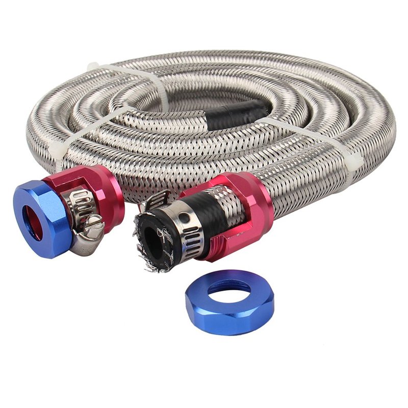 - Stainless steel braided CPE fuel hose can be used with transmission fluid, coolant, oil, pump gas, race gas ,vacuum, hydraulic fluid, lube, diesel and fuel. Commonly used as transmission oil cooler line, fuel return line, fuel supply line, coolant fluid hose, carburetor fuel hose, turbo cooler line, oil feed line, ls swap fuel line.