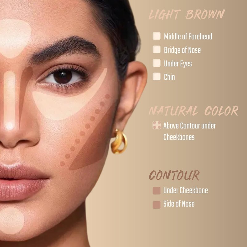 - 【3 SHADES MATTE CONTOUR】Available in 3 shades from light to dark to suit preference and placement area. Includes beige, sandy brown (nose shadow), gray brown shadow (contouring).