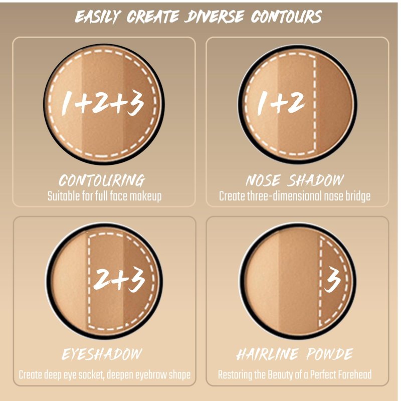 - 【MULTI-USES CONTOUR PALETTE】The all-in-one contour makeup can be used as eyeshadow, eyebrows, collarbone, vest line, body, and hairline contouring to create natural-looking shadows.