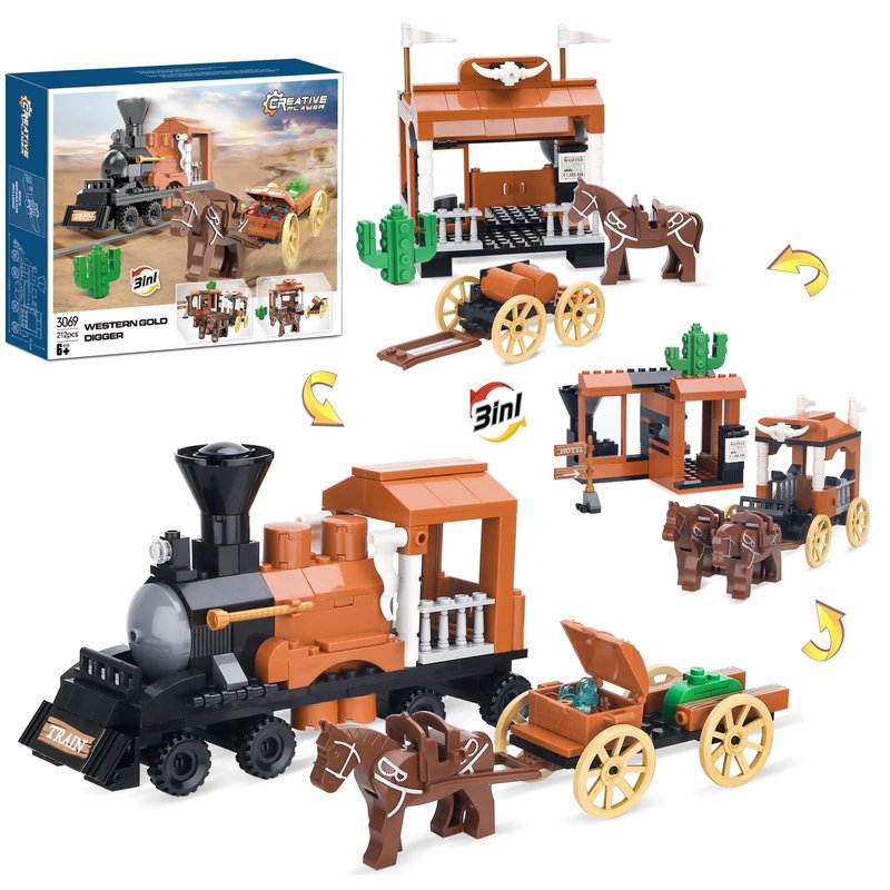 - 🎁Educational STEM Building Toys - Creator 3 in 1 train horse carriage toy building kit can be used as birthday gifts, Christmas, Halloween, and other holiday gifts for girls and boys ages 6+. Western cowboy themed farm toy is also a great decoration for boys’ rooms