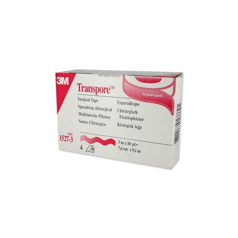 Manufacturer # 1527-3 Brand 3M Transpore Manufacturer 3M Application Medical Tape Color Transparent Dimensions 3 Inch X 10 Yards HCPCS A4452 (Disclaimer) Material Plastic Sterility NonSterile UNSPSC Code 42311708 Latex Free Indicator Not Made with Natural Rubber Latex Features Hypoallergenic, transparent and perforated plastic tape that offers strong adhesion Transpore tape is easy to tear into very thin strips, and is easy to use even with gloves