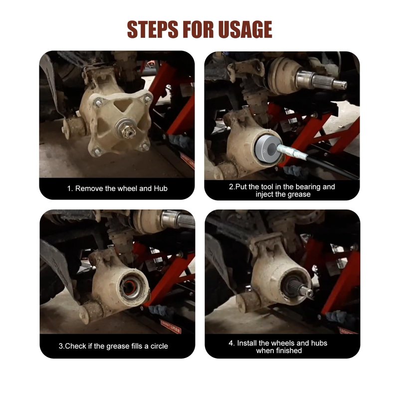 - Double O-Ring seals keep the grease inside of the bearings, which also spread the inner bearing races apart to allow a gap for the grease to easily flow inside. Easy job, Simply inserts the tool into your bearing and pump grease through Zerk fitting with your grease gun.