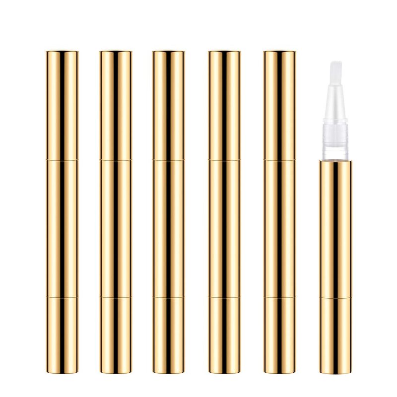 3ml Empty Nail Oil Pen with Brush, Twist Pen for Tooth Whitening, Gel Lip Gloss Container, Eyelash Growth Liquid Tube(Golden, 6PCS)