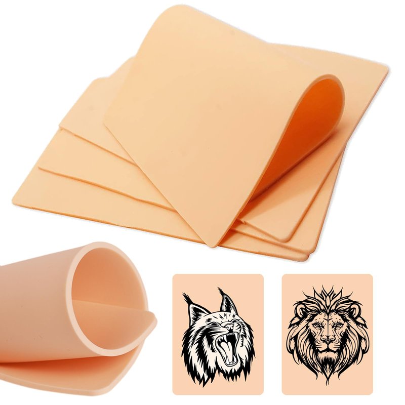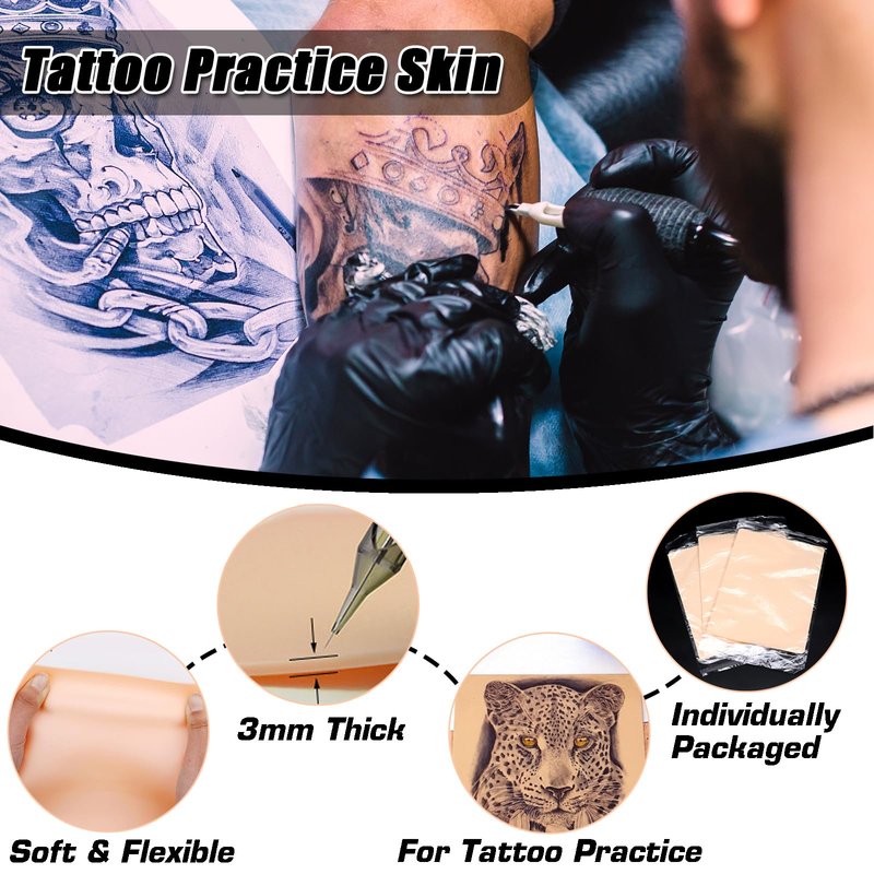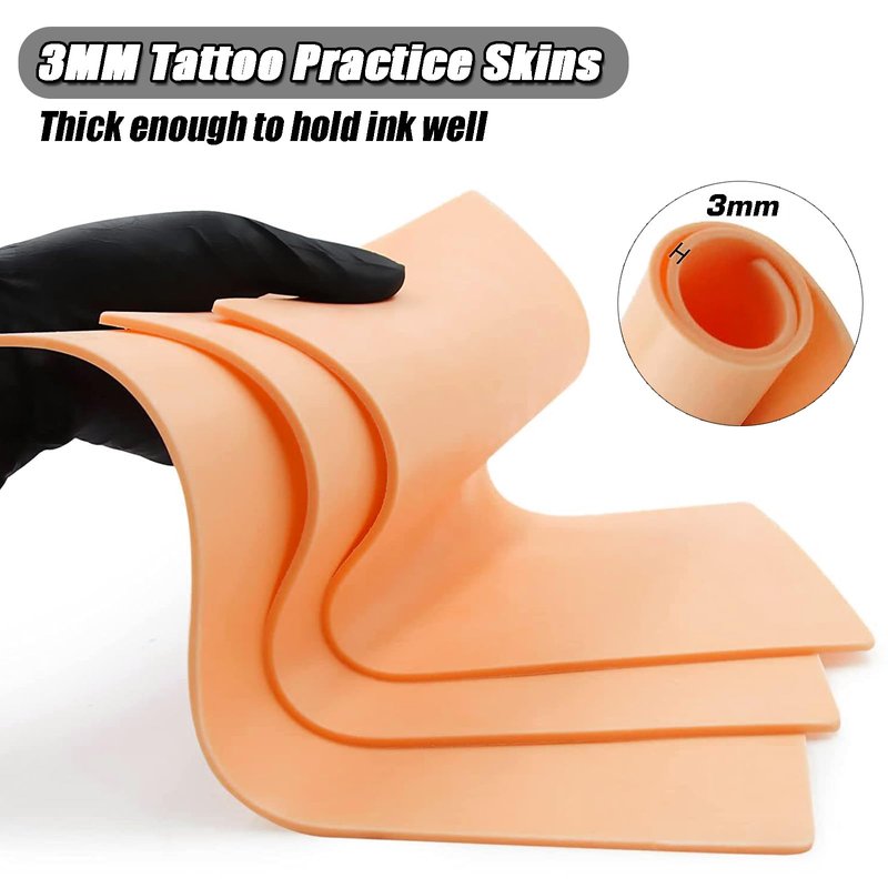 - 【3mm Thick Skin】 - 3mm tattoo fake skins, comes with 5pcs 7.5*5.6 inches tattoo skins, designed for tattoo practicing. It's enough to practice more different techniques
