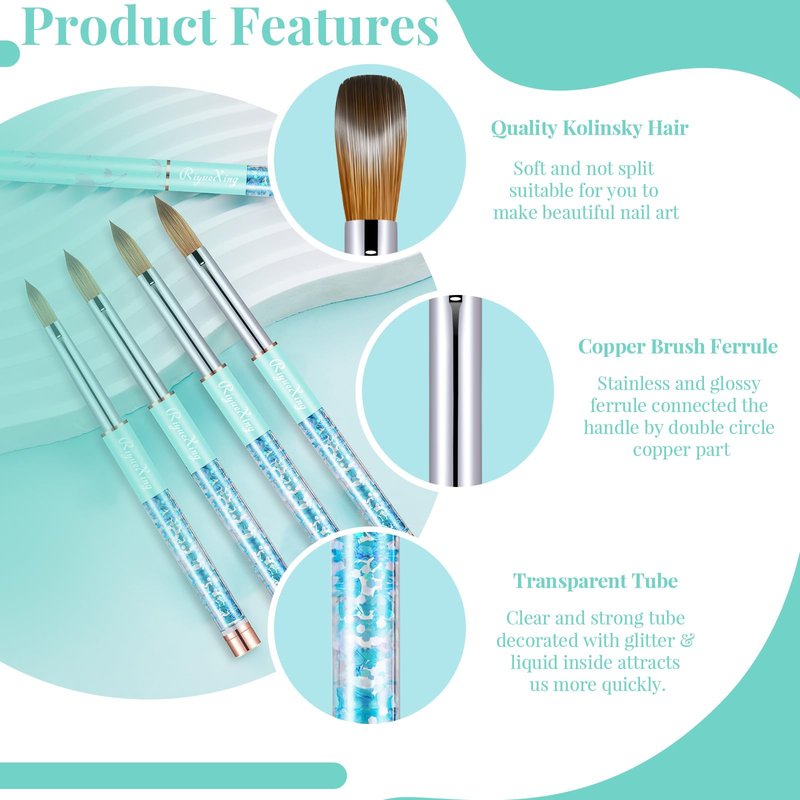 - 🌸 These nail brushes are made with the finest sable hair and Kolinsky hair. It is flexible and durable. It is a necessary nail art tool to create acrylic nails, Apply acrylic products easily, smoothly, and consistently.