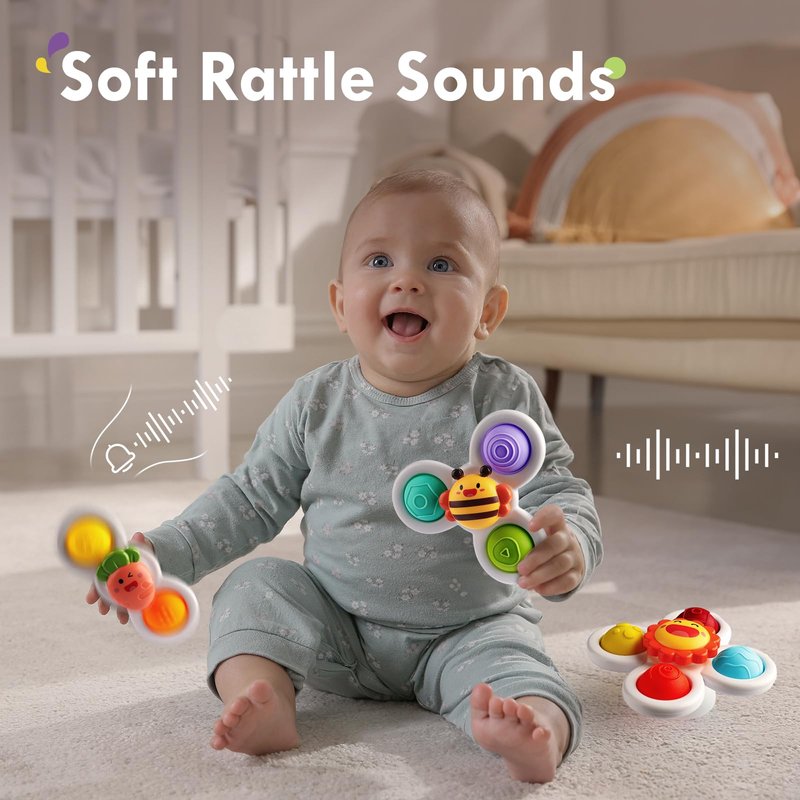 SO GREAT to see little ones love these! The ALASOU suction cup spinner toy work very well, they spin as fast as you want and are made of a great material, that’s soft & easy to clean. you can stick them to our floor, fridge, glass door, highchair tray & bathtub with no issues leaving marks or anything.
