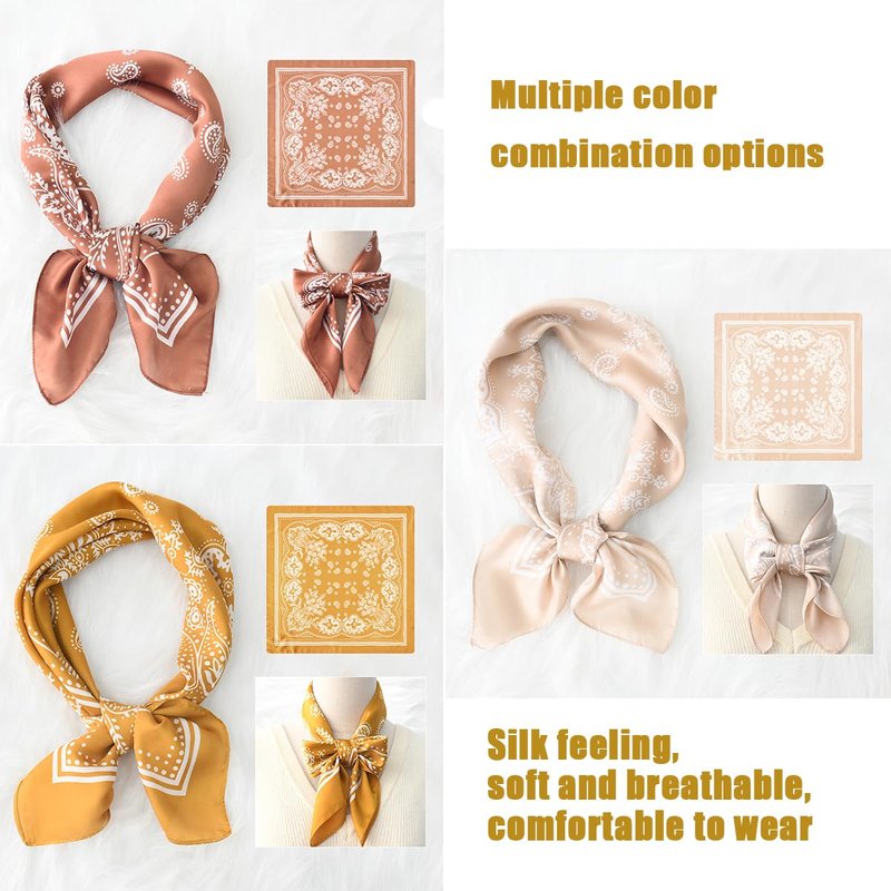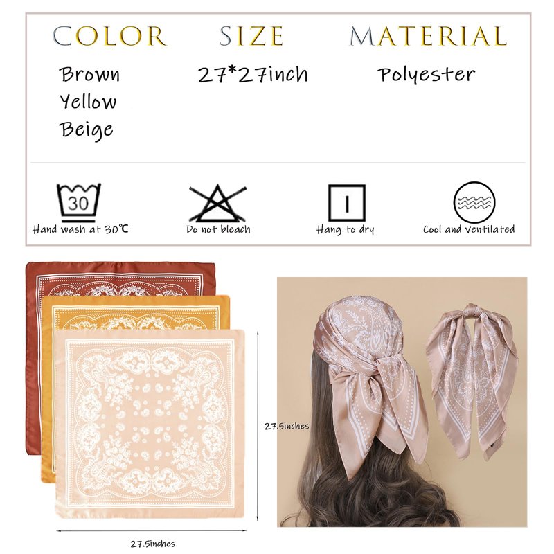 - 【Silk Feeling Head Scarf】Silk scarf made of 100% polyester fiber filament fabric, which is comfortable to touch and full of luster. Head scarf 27.5 x 27.5 inches (70 x 70 cm), a comfortable length, and can be tied in many different ways based on personal preference.