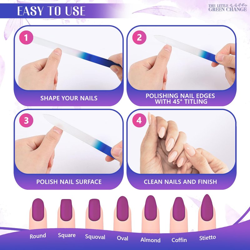 - Wide Applications of Nail Supplies File: This reusable nail file is suitable for men, women, girls, boys, babies, kids and teenagers. This glass cuticle pusher and file is perfect for both artificial and natural nails to make pretty manicures and pedicures at home. This glass nail file kit can also be used as thanksgiving or Christmas gift for family and friends.