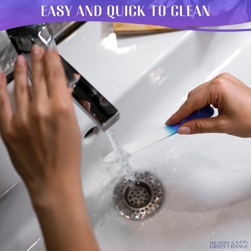 - Unique Design of Glass Files for Nails: These crystal nail files for natural nails have 3 colors shades such as white, sky blue and dark blue. This crystals baby nail file looks more elegant in you salon ambiance and these manicure pedicure set nail filers have non fading colors so that they looks new every time after you clean them.