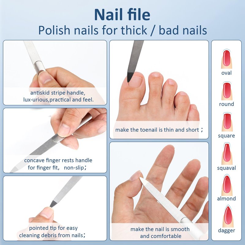 - 💞【TWO IN ONE CUTICLE PUSHER】Ergonomic rounded handles with texture for a positive grip, a non-slip handle for easy control;can be used to remove dirt from the inside of the nails, scrape off the nail polish and gel polish left on the nails and push away dead skin around the nails. This is a fully functional nail care tools, Complete care that covers your hands and foot.