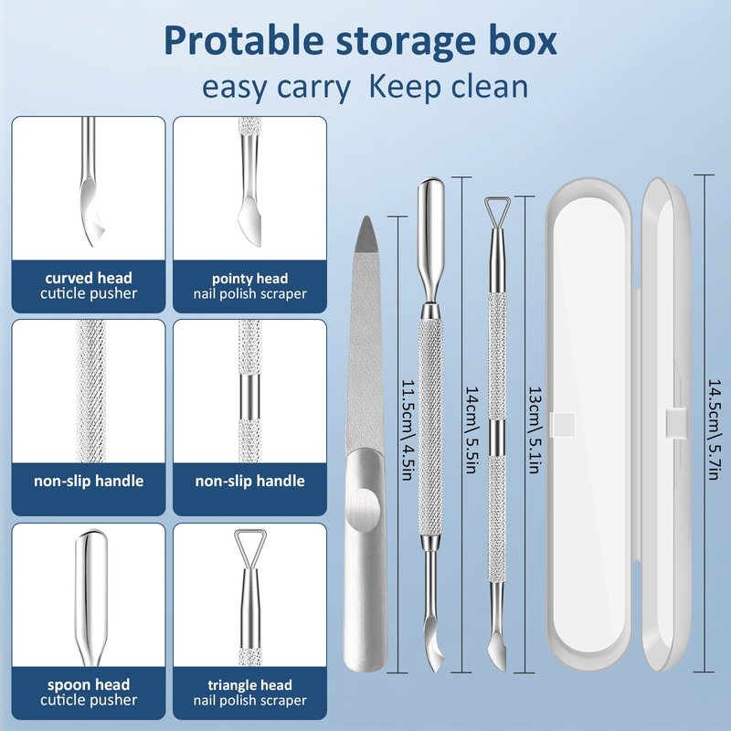 - 💞【EASY TO USE, CLEAN AND CARRY】The Cuticle Pusher kit is very sharp and are easy use.Cleaning is equally easy, just wipe them with boiling water or alcohol. Put it back in the protective case and you can carry it around, it doesn't take up space,you can take it anywhere, suitable for travel or business trips.