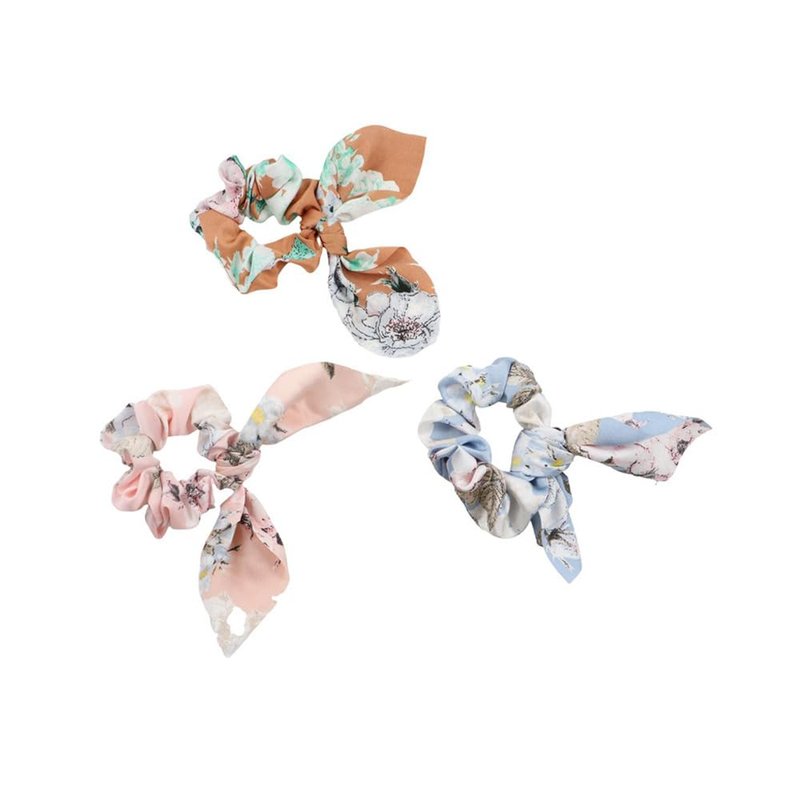 3pcs Fashion Bow Scrunchies for Women, Elastic Print Flower Scrunchies with Elastic Hair Ties Bands, Bowknot Floral Hair Rope Ribbons Ponytail Holder