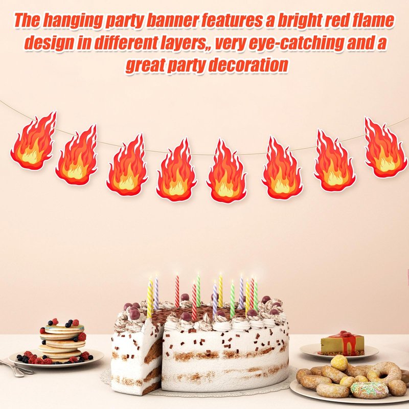 - Eye-Catching Design: This hanging party banner is printed on both sides and features vibrant flames in different layers, the bright red and orange hues evoke excitement and enthusiasm, setting a fun tone for your event.