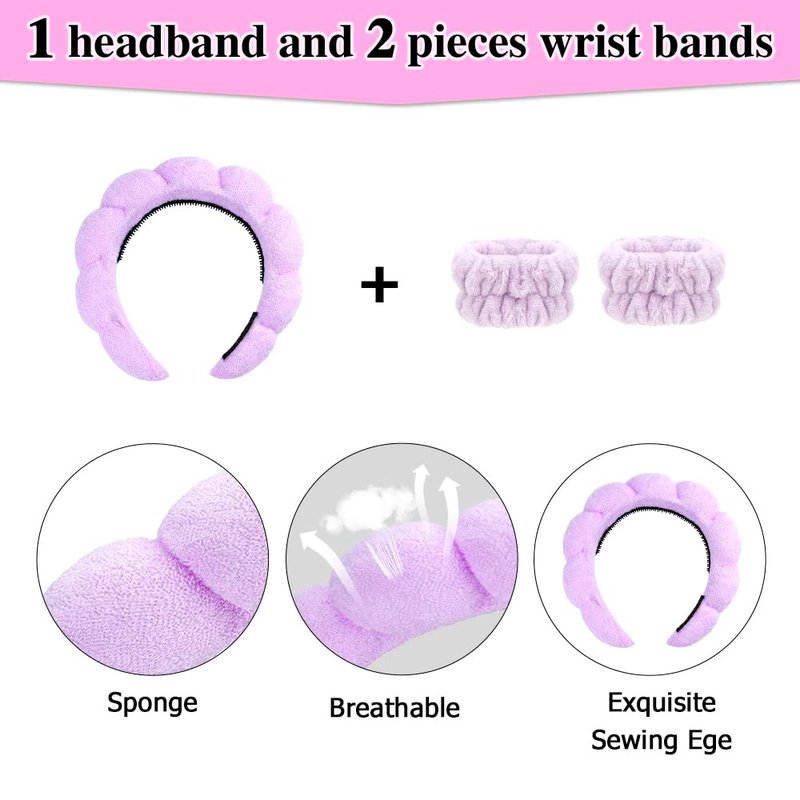 - 🌷[HIGH QUALITY] Each headbands for women is made of a sponge with a terry cloth fabric cover. The wrist towels for washing face is made of coral fleece. These material touches soft and comfortable. Both the hairband and wristbands are stretchable and do not weigh on your skin, and can be adjusted to fit your personal needs. Ours wrist bands for washing face are stitched by three threads, which are stronger and less likely to break compared to similar wristbands for girls, with better stitching.