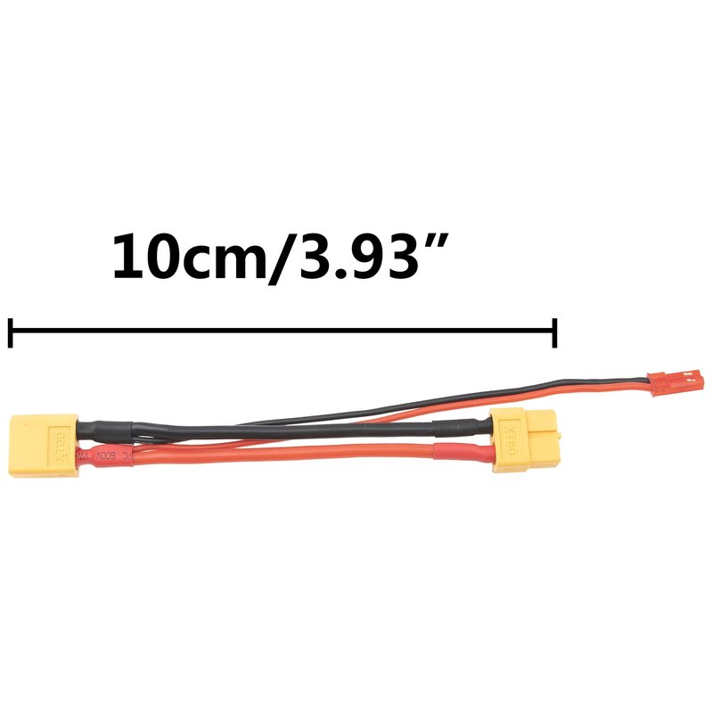 - 3.Wire Length :10cm/3.94'' ; Plug Type: (XT60 + JST) Plug ; Wire Gauge: 14AWG Soft Silicone;The XT60 parallel connector battery adapter, convenient to use, direct to connect your batteries to XT60 connector.