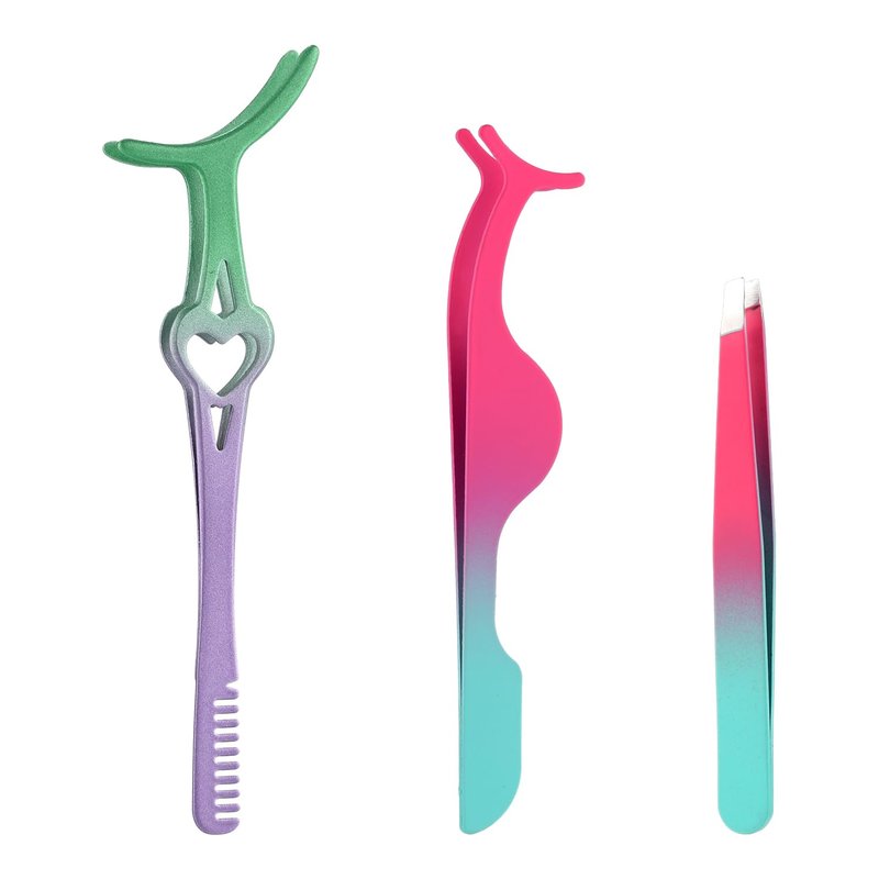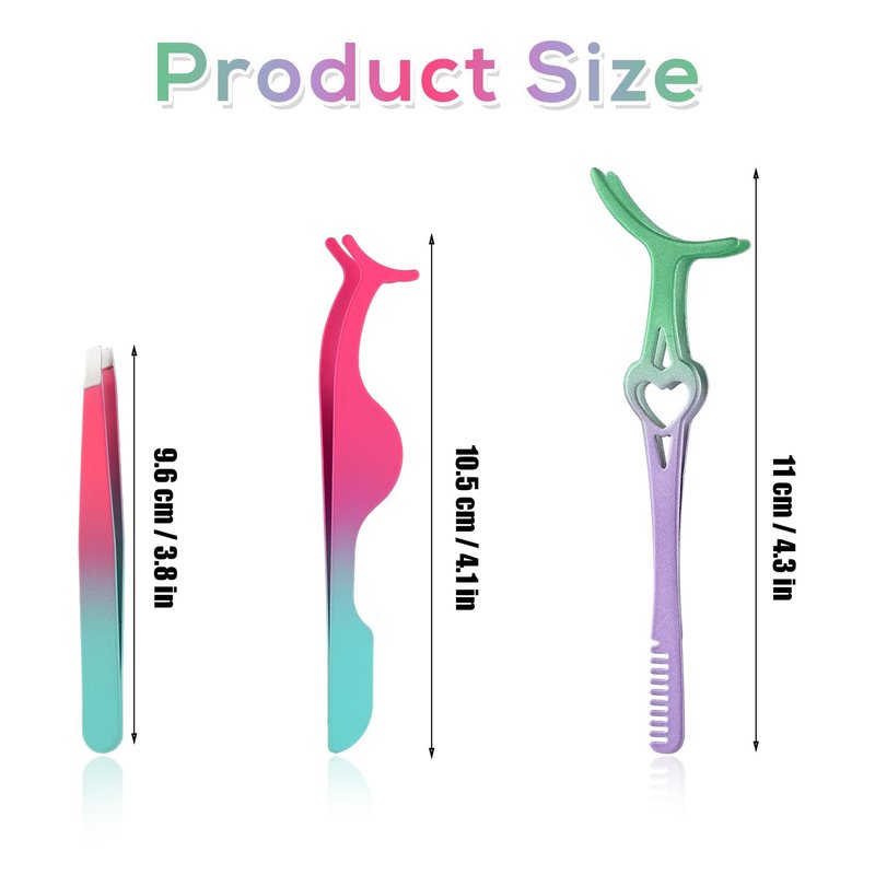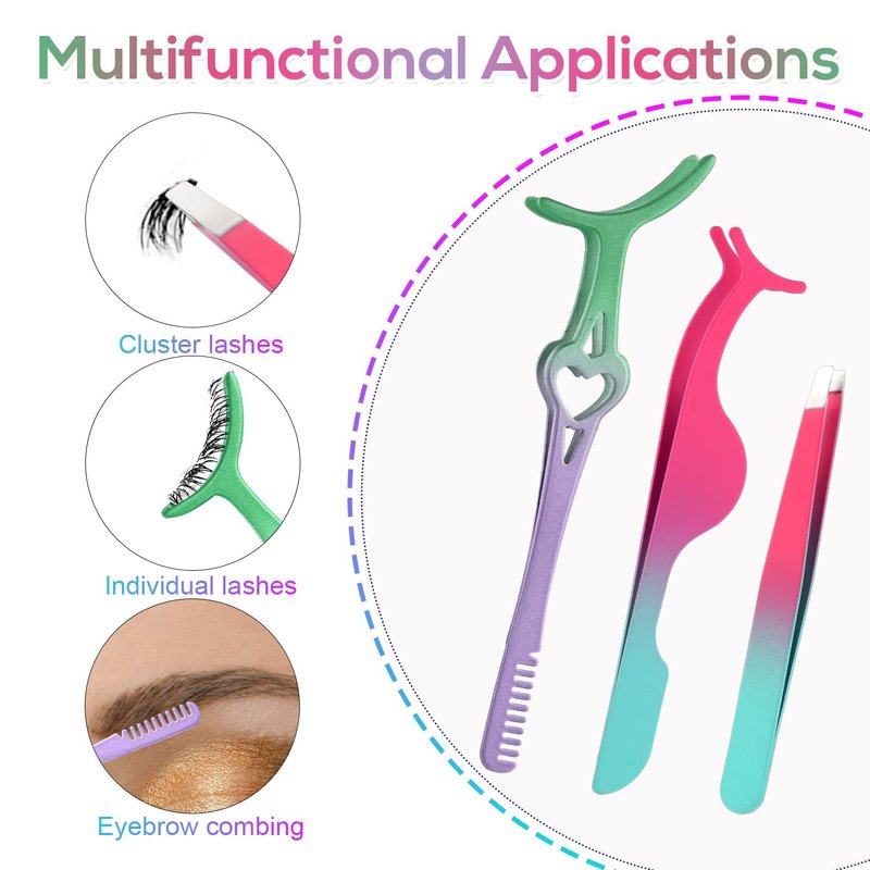 3pcs Lash Tweezers Set, Gradient Color Eyelash Tweezers for False Lashes Stainless Steel Eyelash Applicator Tool Eyelash Extension Tweezers for Classic Lashes False Lashes Makeup