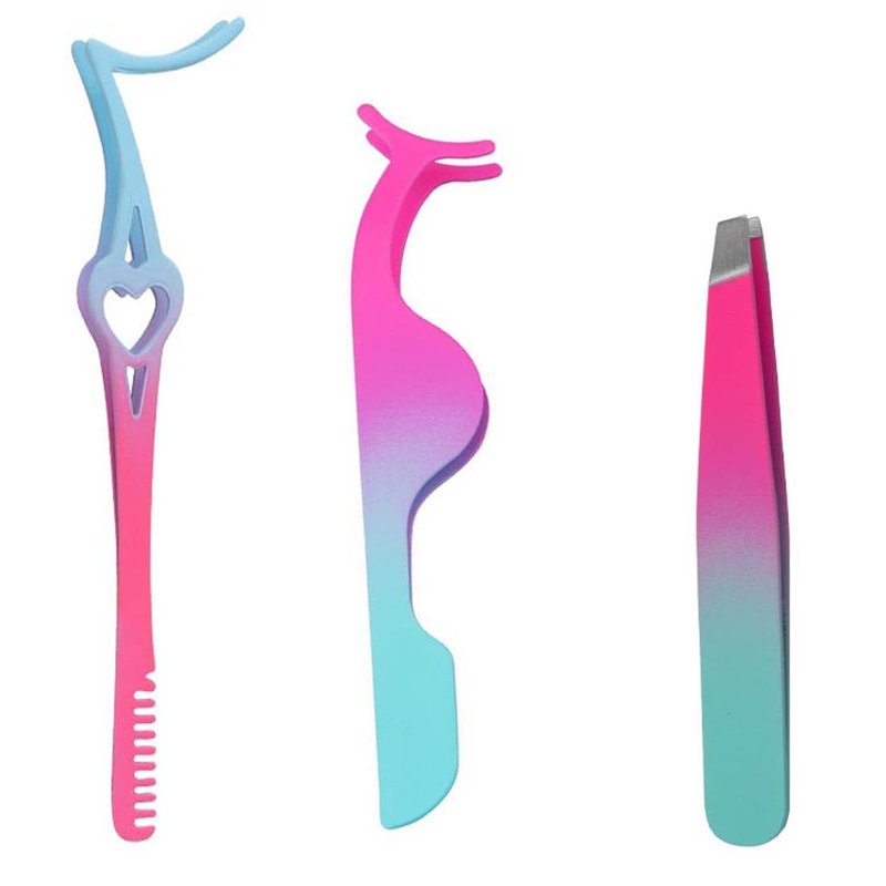 3pcs Lash Tweezers Set, Stainless Steel Eyelash Applicator Tool Gradient Color Eyelash Tweezers for False Lashes Eyelash Extension Tweezers Beginner Girls Makeup Artist