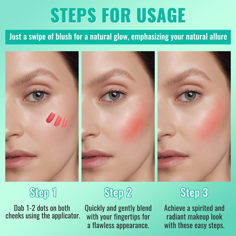 - Easy to Use: The blush liquid has is lightweight, has a silky texture and good ductility. Just use the applicator, apply 1-3 dots to your cheekbones, use the built-in special brush head to apply lightly, and quickly pat your fingers apart; Or add a small amount of makeup egg/sponge to create a more layered makeup effect.