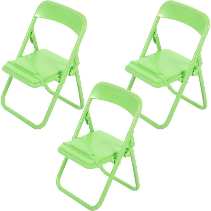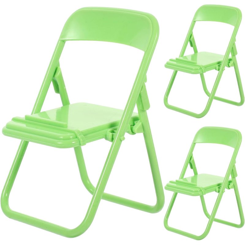 3Pcs Mini Folding Chairs, Dollhouse Folding Chair Miniature Foldable Chair Novelty Mini Folding Chair Phone Holder 1:12 Scale Chair Action Figure Accessories for Desktop Dollhouse Decor
