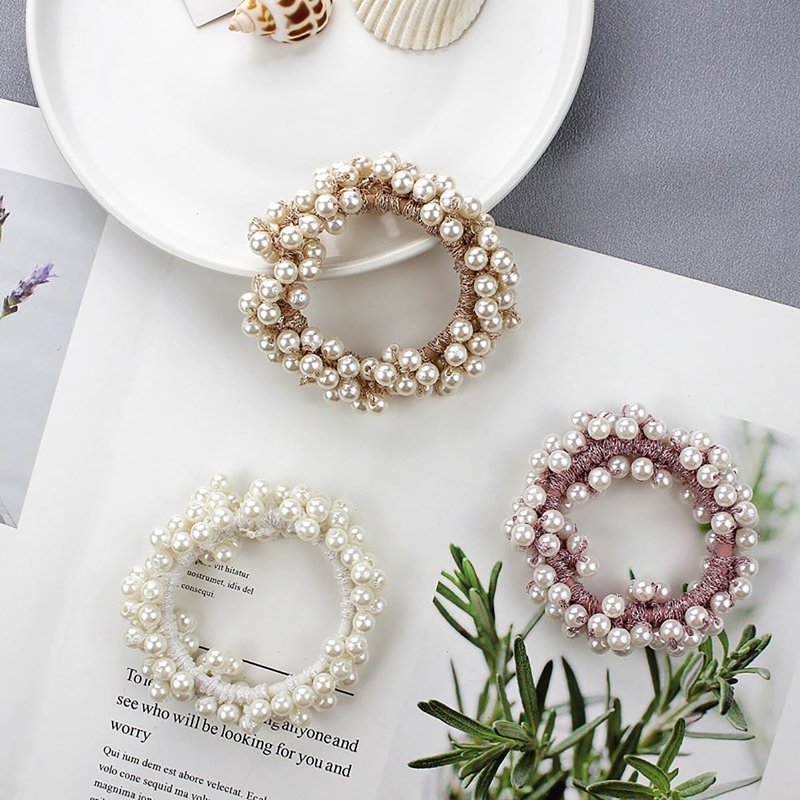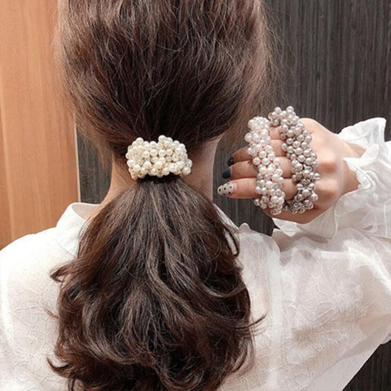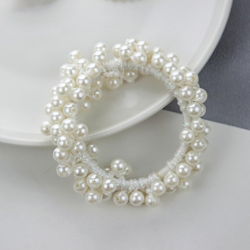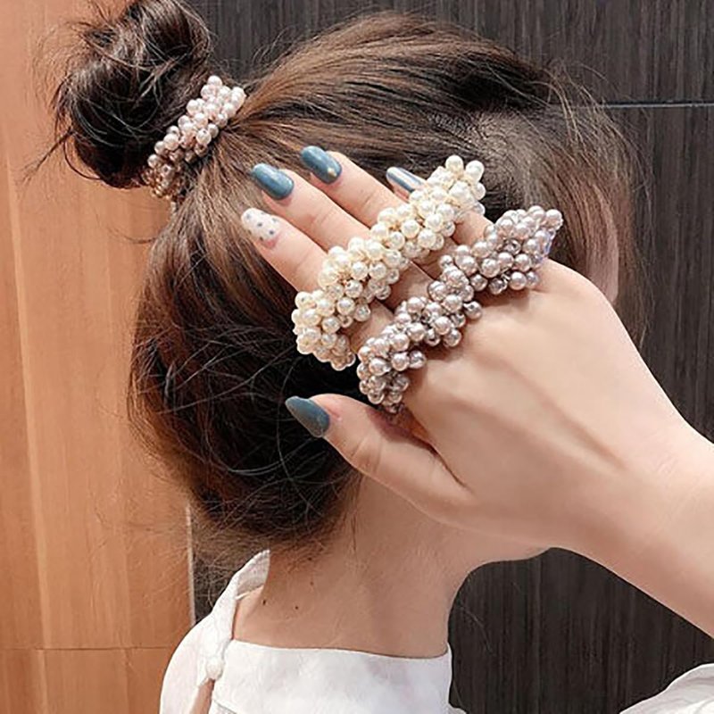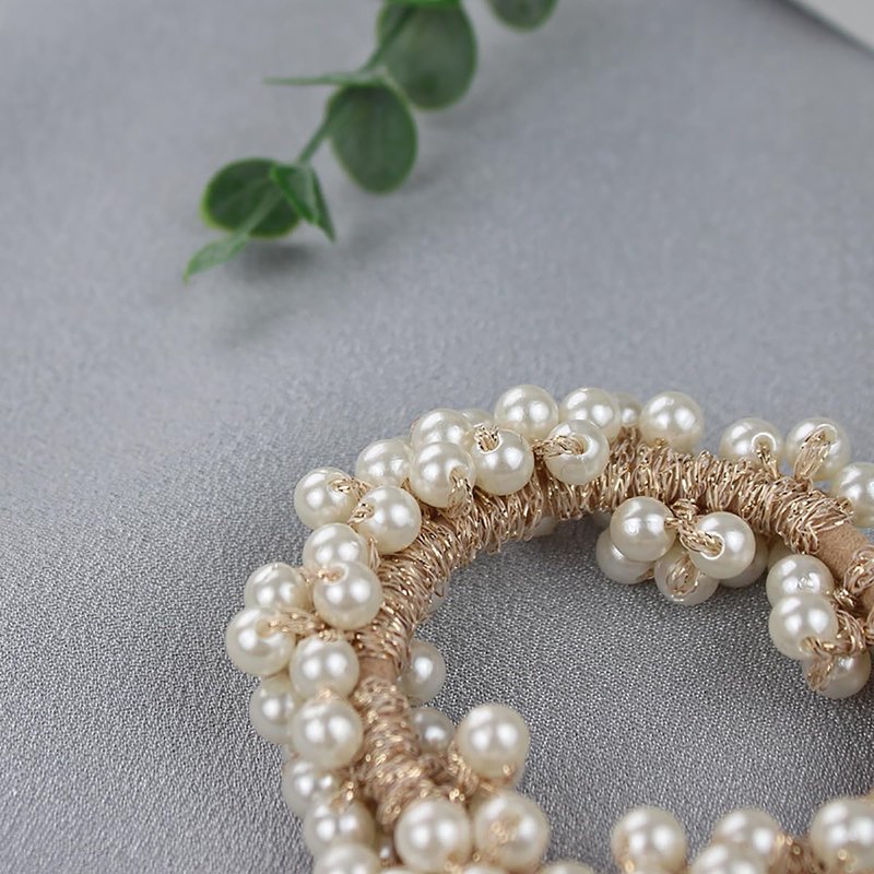 - 【Elastic & Comfortable】These ponytails are made of handcrafted pearls, and high elastic rubber bands. Each pearl is carefully selected, and all the pearls on the hair rope are carefully connected by hand by laser lines, durable, elegant and sturdy, not easy to break.