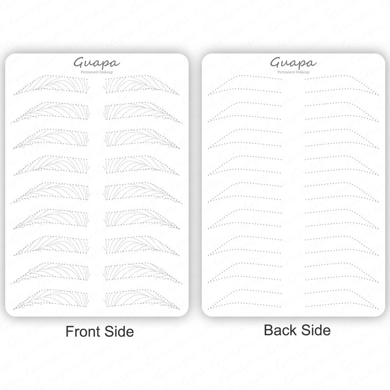 - Dual-Sided Mastery: Enhance your microblading and shading skills with our double-sided pre-printed strokes practice skin. Pre-printed with stroke bundles, foundation stroke,hairstrokes branches, and eyebrow tail, perfect for combo Brows practice.