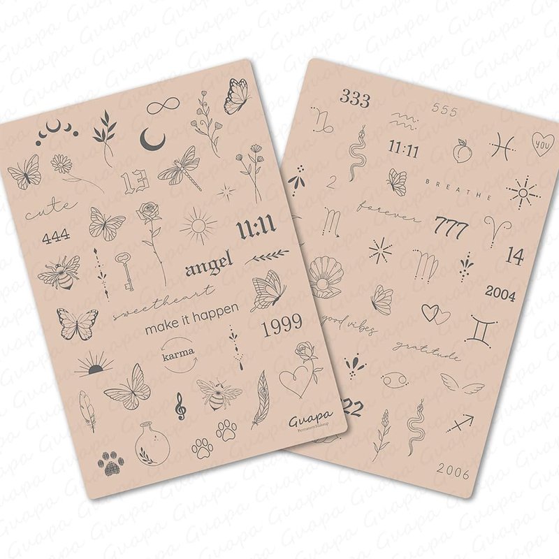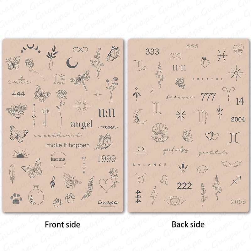- Tiny Tattoo Practice Skin: the double-sided, easy-wipe, fine-line tattoo practice skins feature over 80 different stencil designs on the front and back of the skin.
