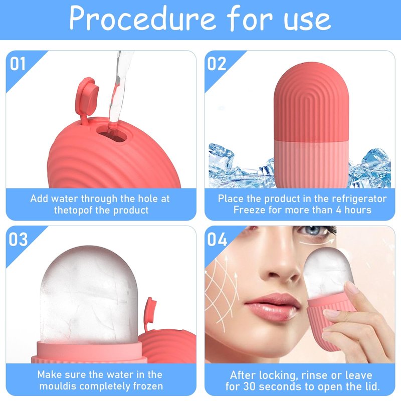 - Material: Made of silicone, this ice roller is durable with good repeatability. The silicone skincare tool is food-grade and BPA-free, suitable for people of all genders and ages. Fill the ice roller mold with water, freeze in the fridge for over 4 hours, and apply the ice cubes to the skin in a circular motion every 30 seconds. For best results, recommend using 1-2 times daily