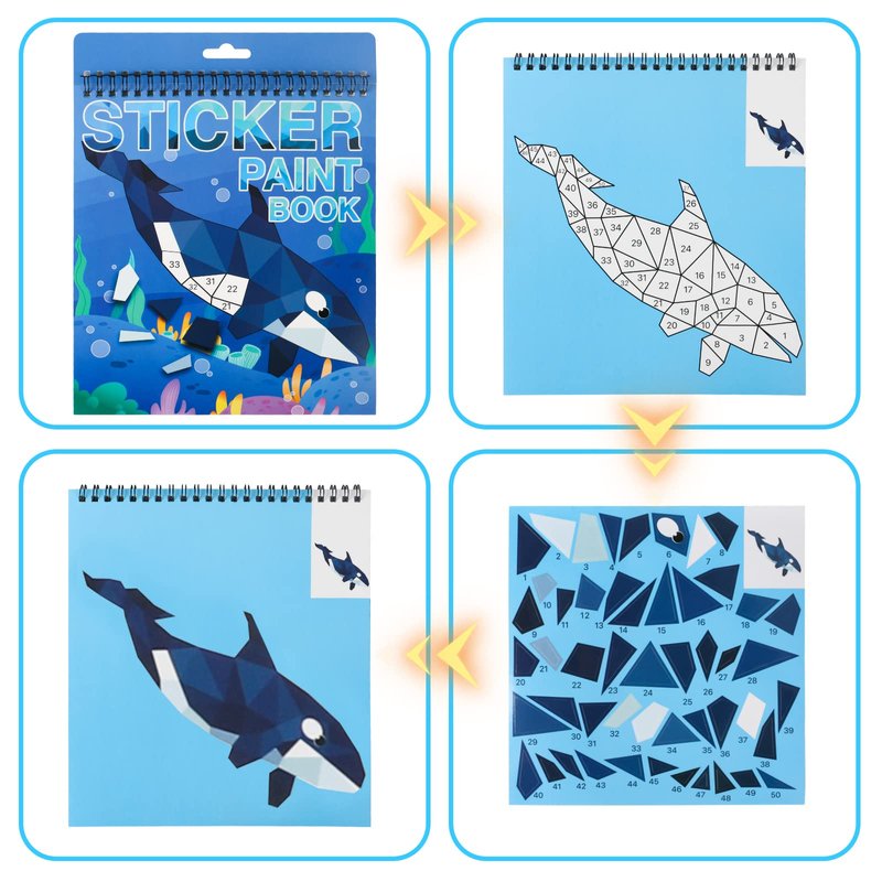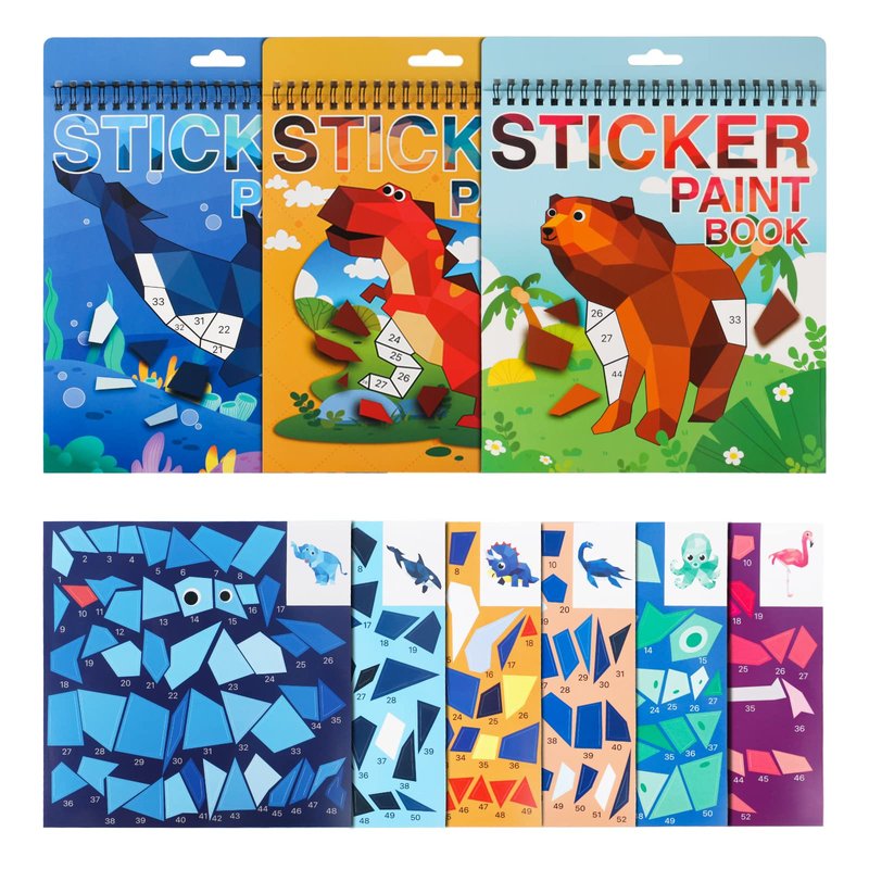- 【3 Pack Paint Number Sticker Books for Kids Adults】 : TPQKA design Dinosaur, Animal and Ocean theme number paint sticker books for kids ages 4-8,8-10 or for adults. These are excellent car plane travel activities for kids ages 4-8,6-8,8-10. Spiral binding design easy to carry and store.