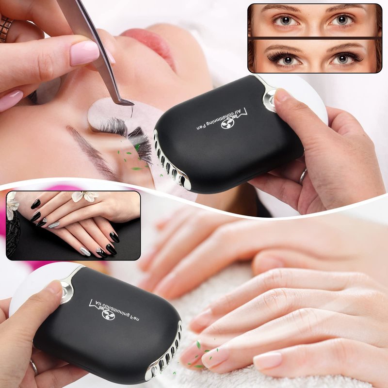 - USB Fan Dryer: This manicure fan has a built-in sponge and dual modes of humidification and cooling, which can effectively cool down and speed up the drying of false eyelashes and manicures. There is a small foldable bracket behind the fan, freeing hands. The large capacity can work continuously and is equipped with a USB charging cable, which is convenient and fast.
