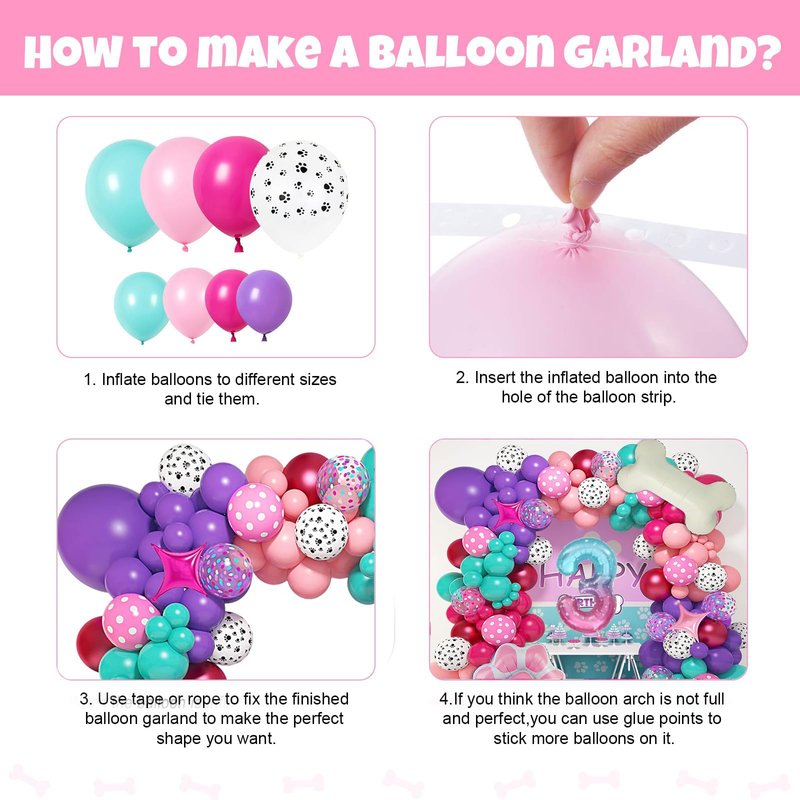 - Unforgettable DIY Pink Party: Pink balloons garland arch kit helps you match the rich balloon colors! These Dog birthday party decorations set can be applied to any event. It will provide you with plenty of creative space. Come and DIY the unique theme party with your friends! Note: Do not overfill the balloon, use the arched strips at intervals to prevent the balloon from popping.