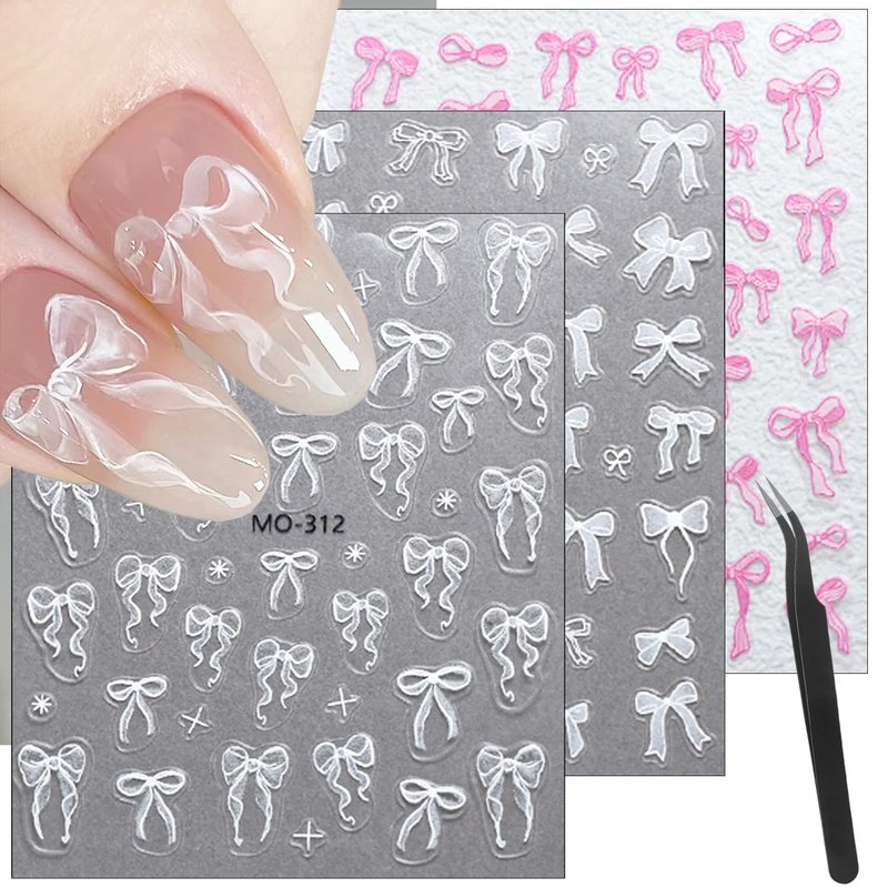 - Easy to Use: The 5D self adhesive bow design nail stickers, just peel it from the paper and stick it on you nails. Easy to use, Ideal for natural or acrylic nails. Is the best nail decoration.