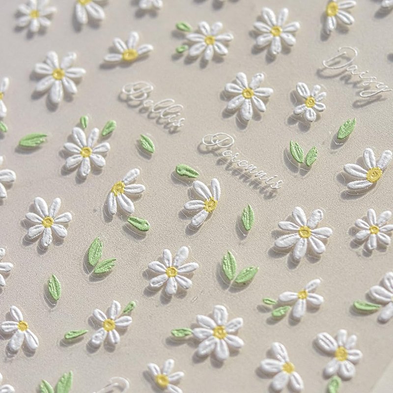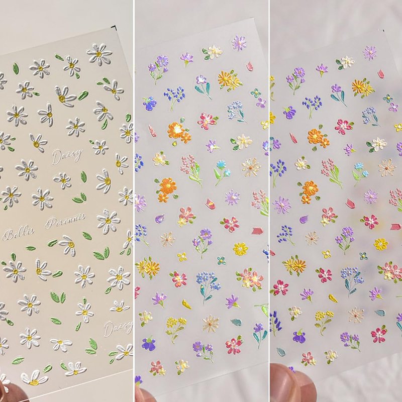 3Sheets Nail Art Stickers Flowers Butterfly 5D Daisy Little Wild Flower Nail Decals for Women Girls Adorable Salon DIY Acrylic Spring Nails Design Supplies (Flower A)