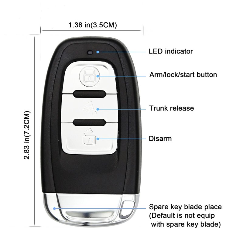 - 【PKE Engine Start Button】 --- Smart key PKE Car Alarm system with PKE, remote start & keyless go system and upgrade your vehicle with keyless go system & auto lock unlock the door.