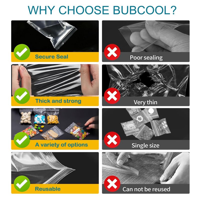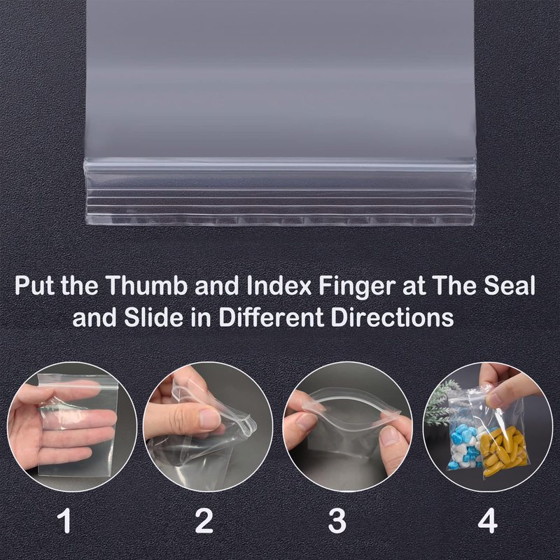 - Easy to Use: Apply pressure to the seal of the small plastic bags between your thumb and index finger, then slide the seal from different directions. Then you can easily put items in the bag